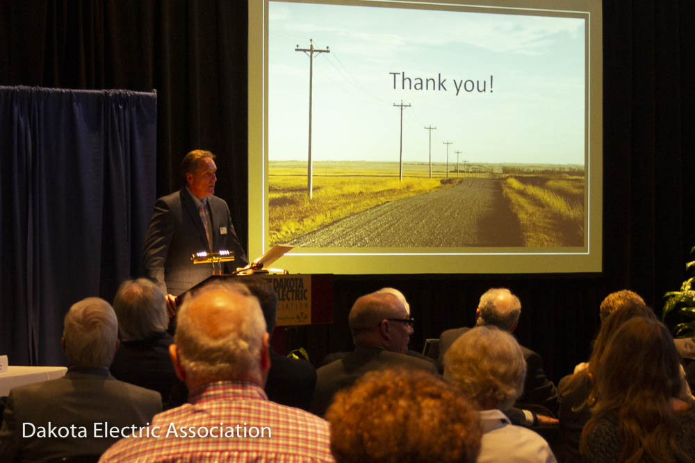 Jon Brekke, vice president and chief power supply officer for Great River Energy, brought an update from Dakota Electric’s wholesale power supplier. He discussed the growth of renewable energy at Great River Energy, meeting the state’s renewable energy goal eight years early, reducing CO2 emissions and moving toward 50% renewables by 2030.