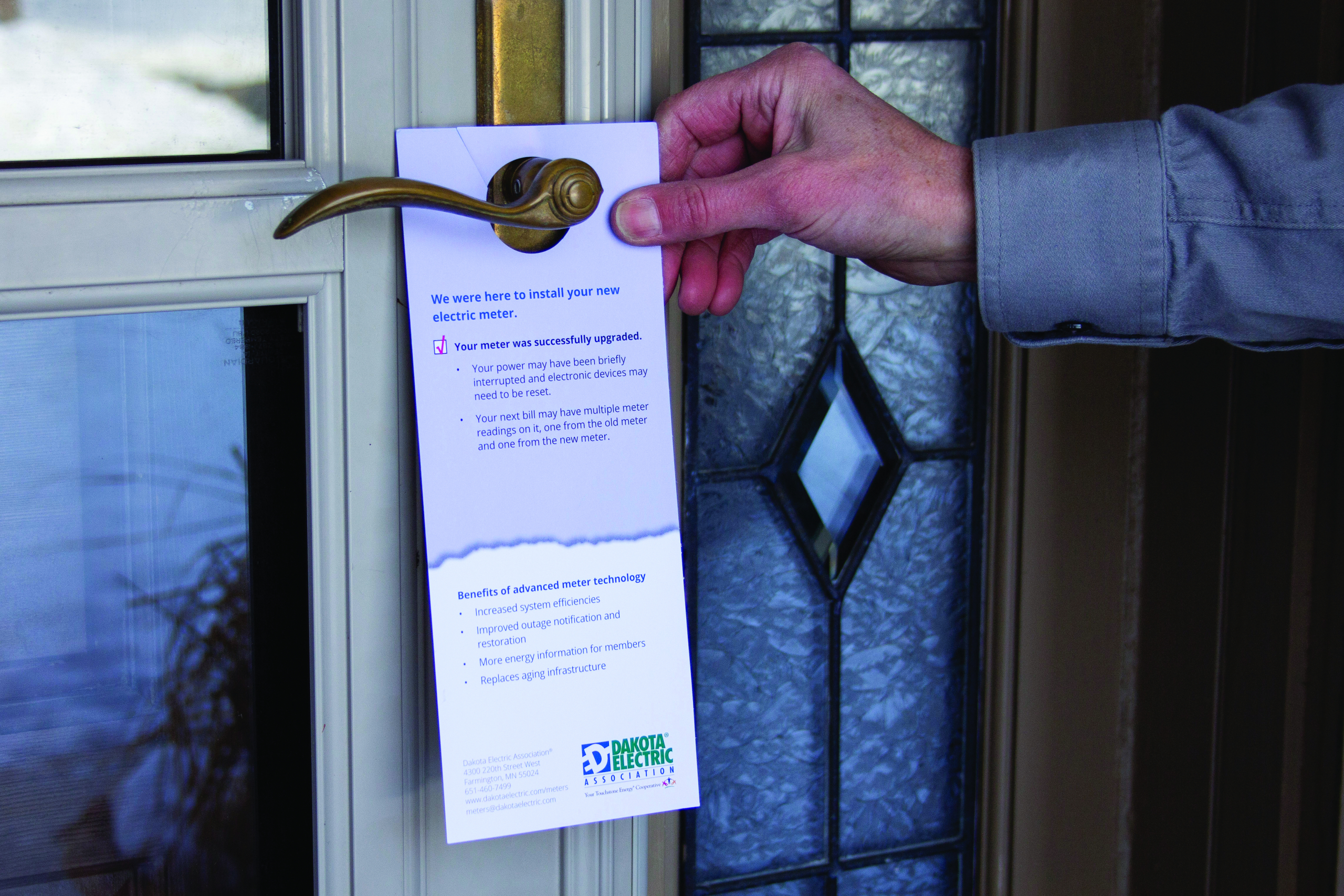 After the equipment is updated, the meter technician will leave a door hanger indicating a successful installation. Please call 651-460-7499 or email meters@dakotaelectric.com if you have any questions. Thank you for your patience as we work to improve our service!